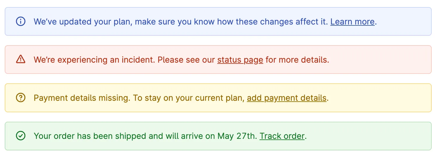 Also known as: Notification, Feedback, Message, Banner, Callout