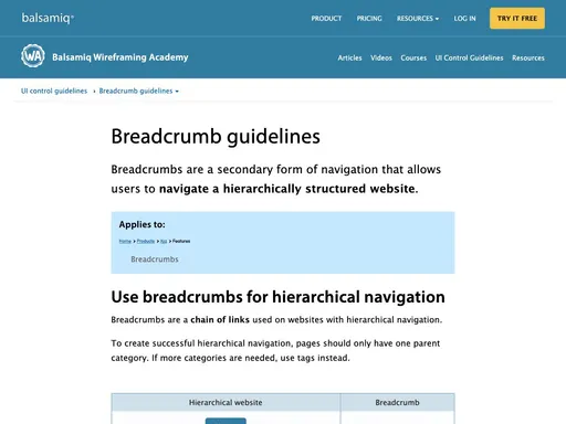 You may also find examples of websites that use breadcrumbs to show the history of all the pages the user has visited in their current session, but this seems to be far less common. For the sake of this article, I will focus on the first two contexts: representing page structure; and representing nested categories.
