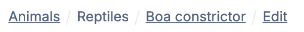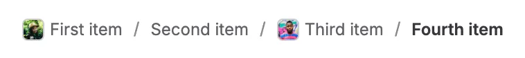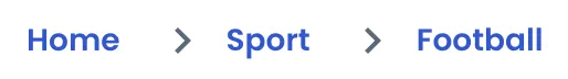 Separation of breadcrumb items is usually indicated with either: a greater-than symbol (>), a forward slash (/), or a similar-looking icon.