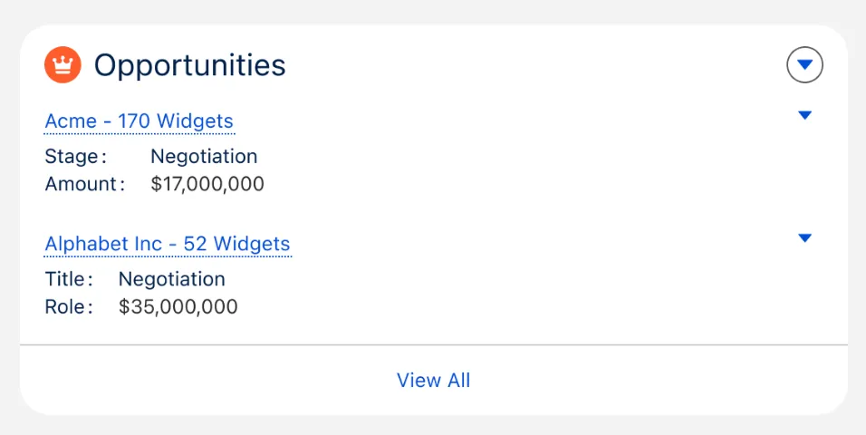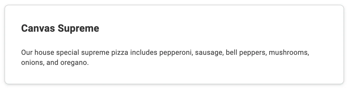 A container for content representing a single entity. e.g. a contact, article, or task.