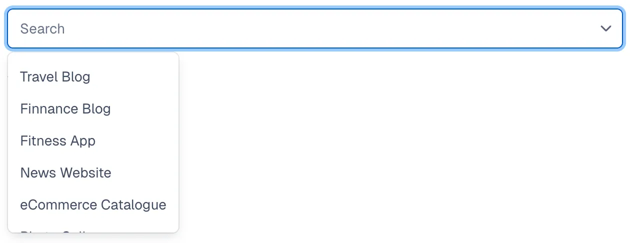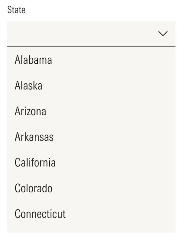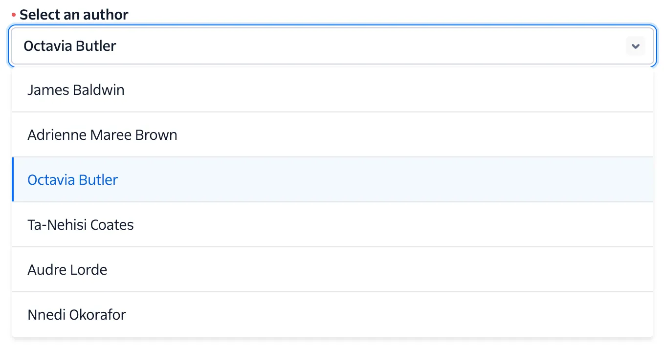 A form input used for selecting a value: when collapsed it shows the currently selected option and when expanded, it shows a scrollable list of predefined options for the user to choose from.