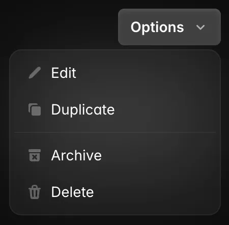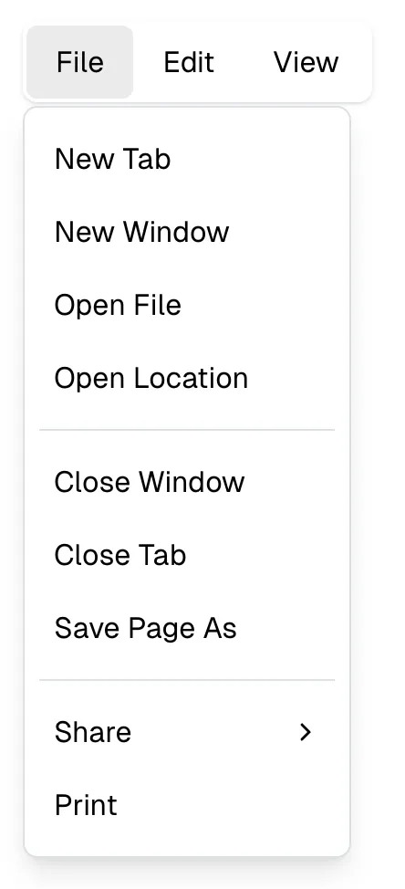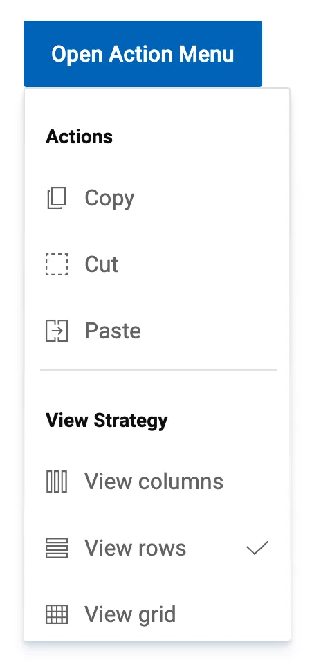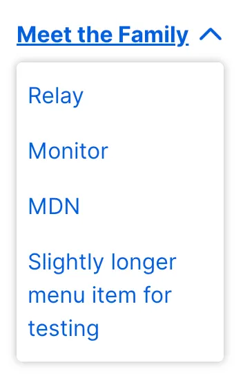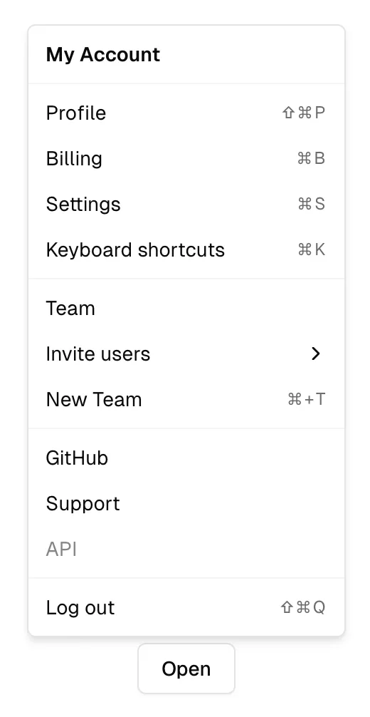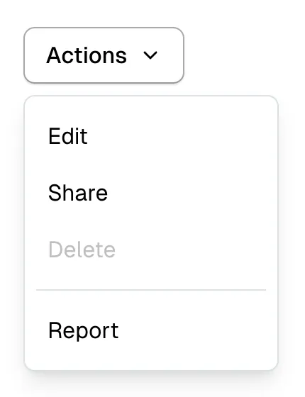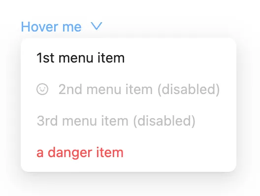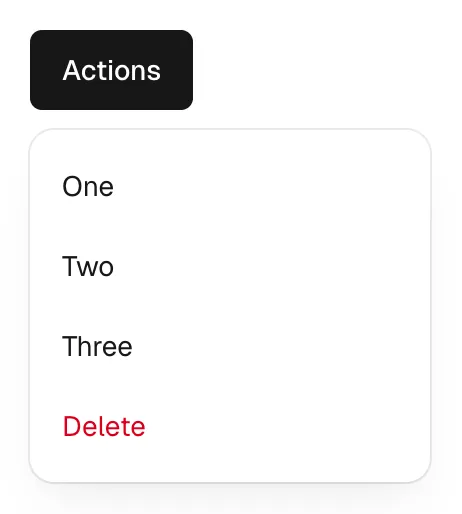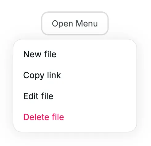 A menu in which options are hidden by default but can be shown by interacting with a button; it differs from a select in that it shows actions or navigation options and is not a form input.