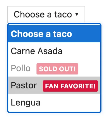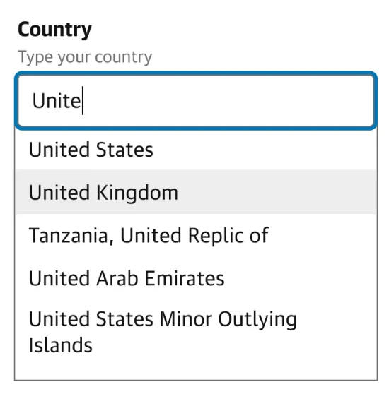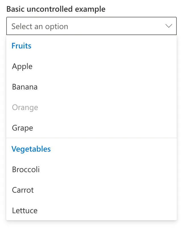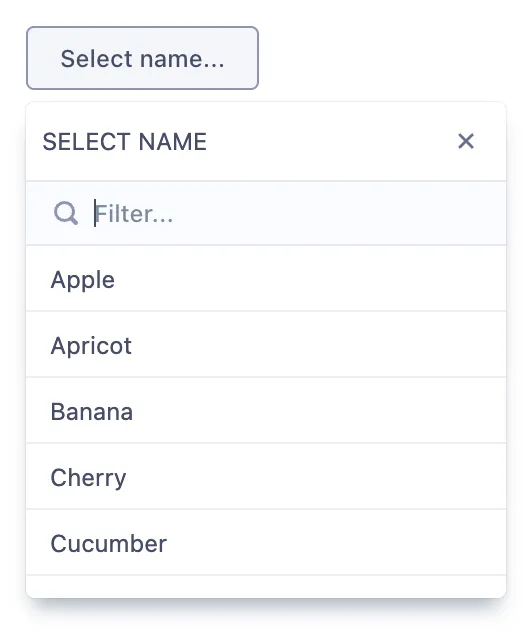 A form input used for selecting a value: when collapsed it shows the currently selected option and when expanded, it shows a scrollable list of predefined options for the user to choose from.