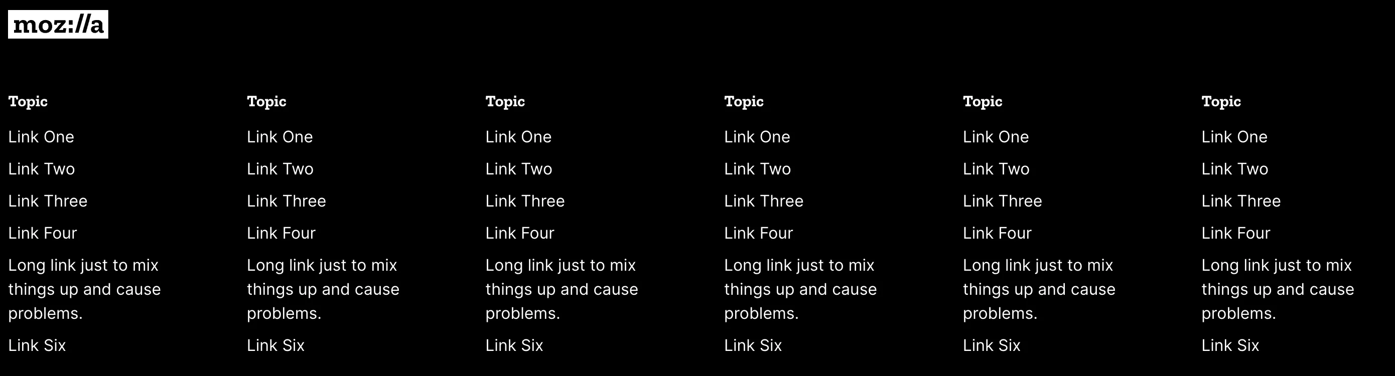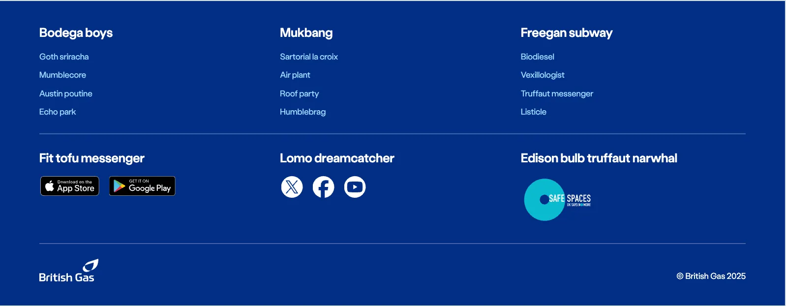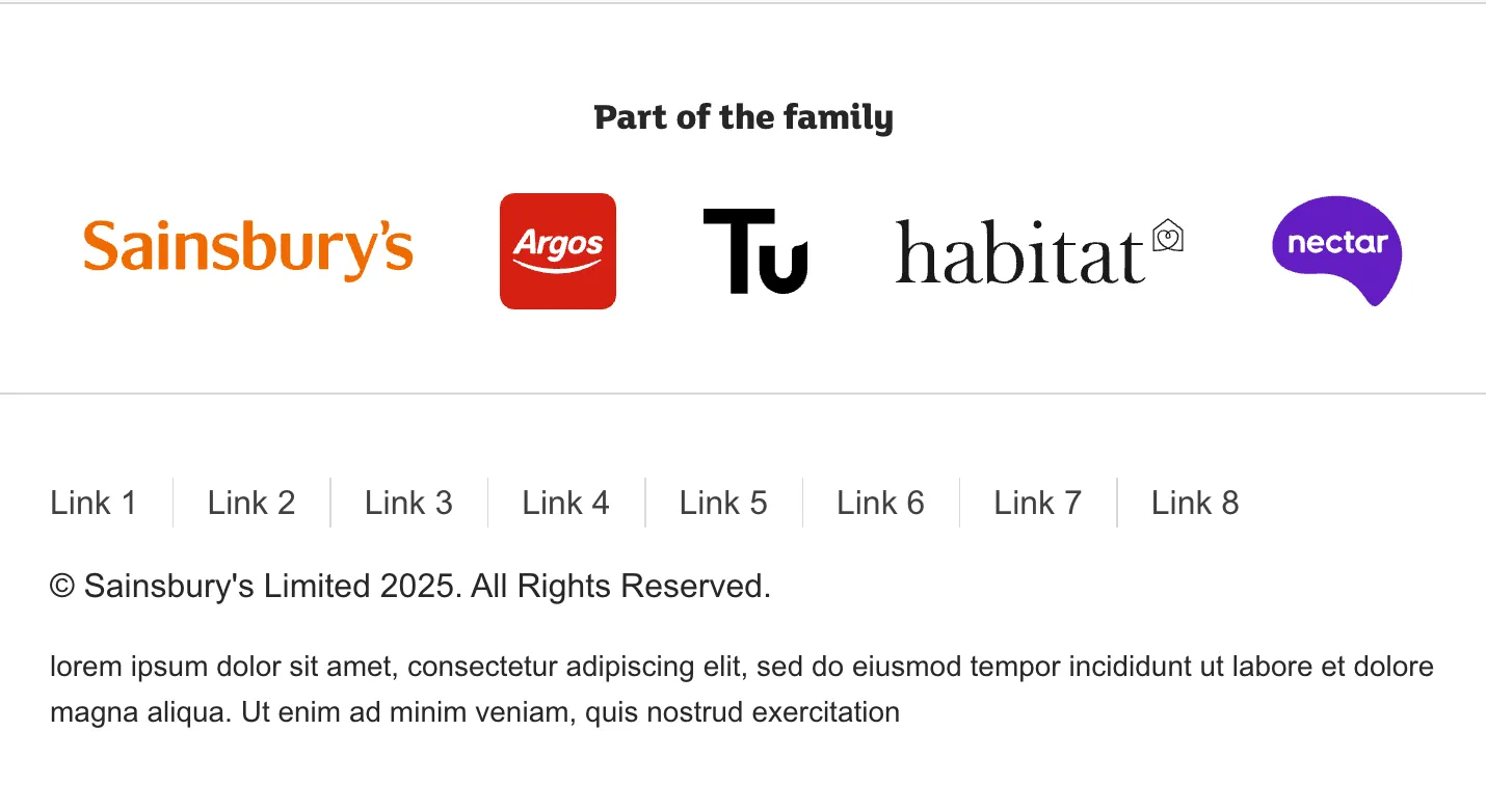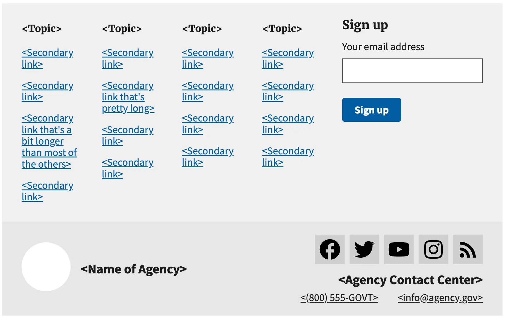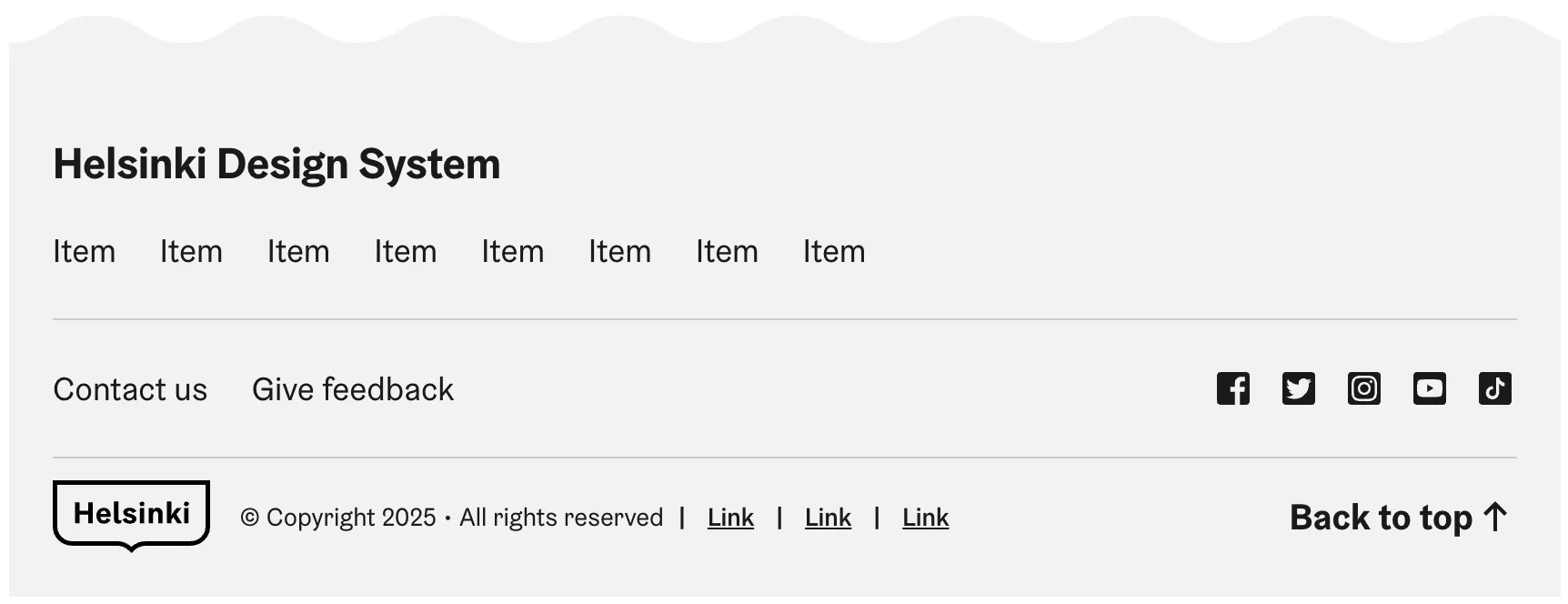 Commonly appearing at the bottom of a page or section, a footer is used to display copyright and legal information or links to related content.