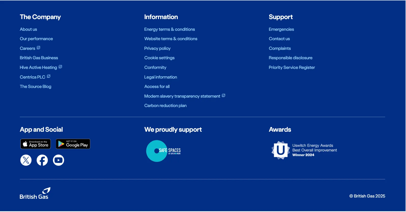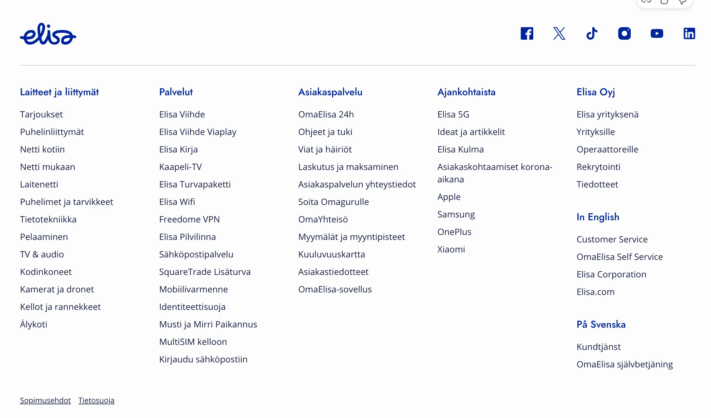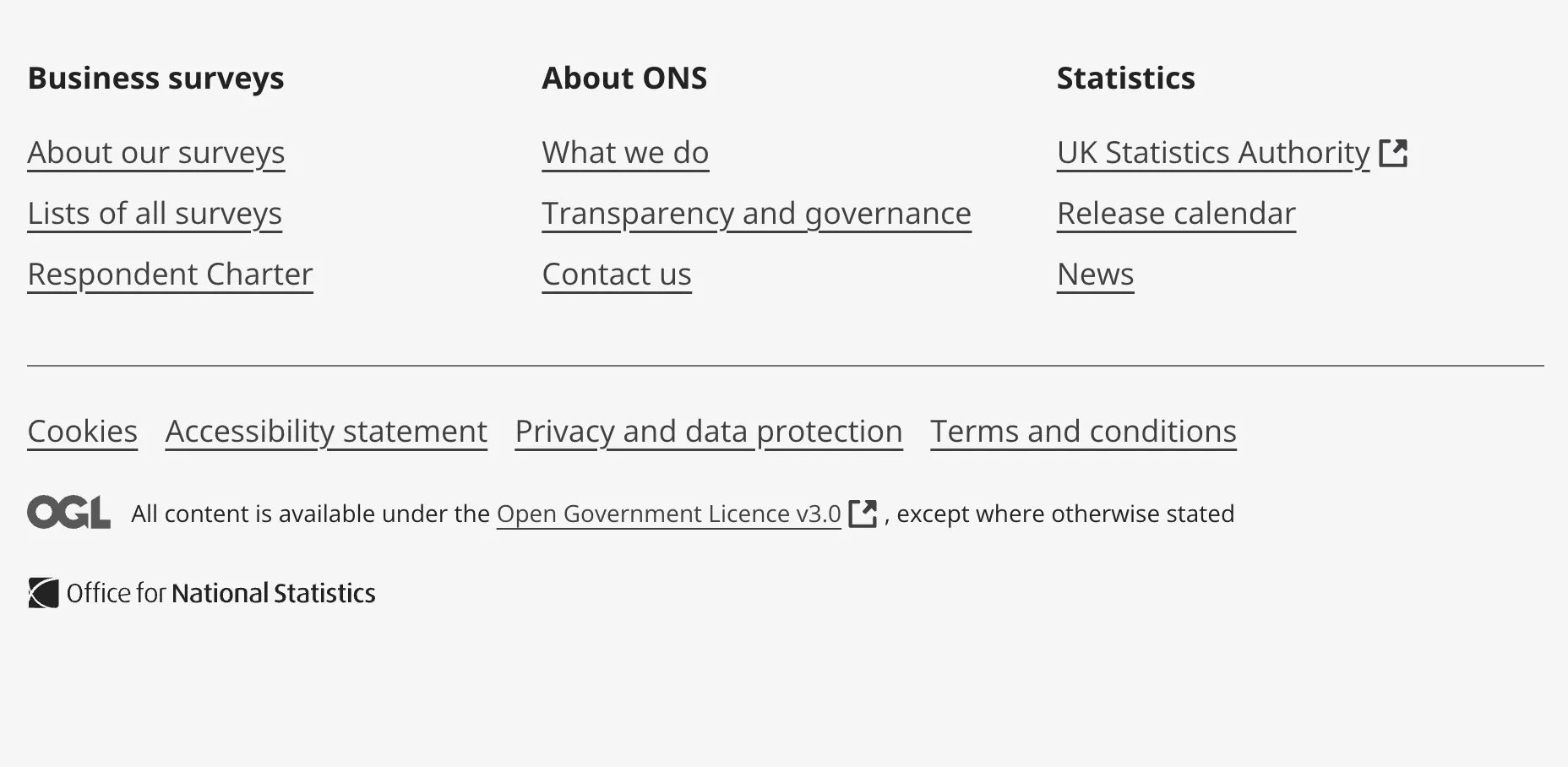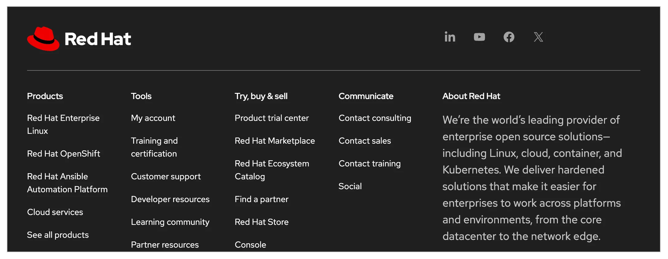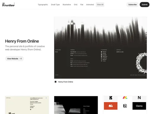 Commonly appearing at the bottom of a page or section, a footer is used to display copyright and legal information or links to related content.