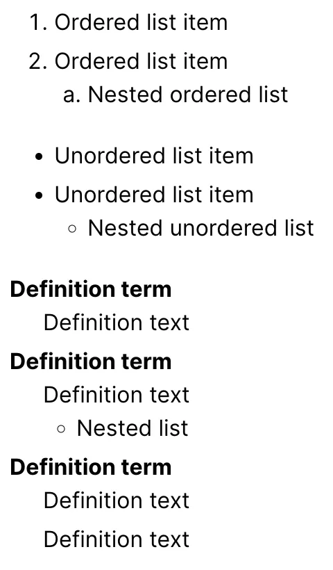 - description list β for key-value pairs.