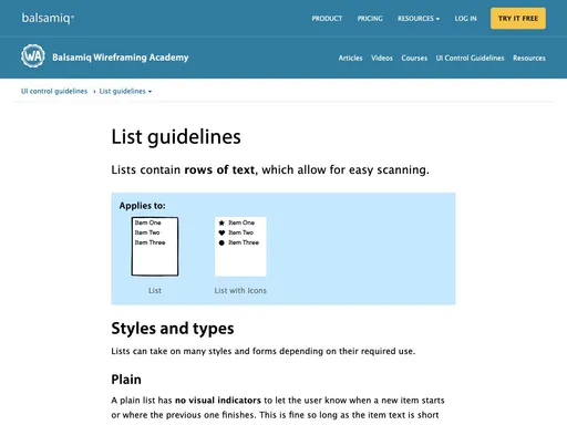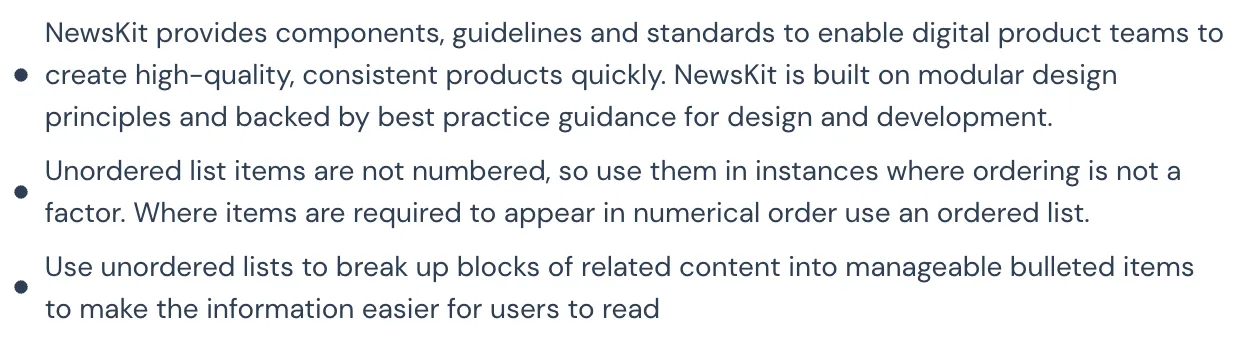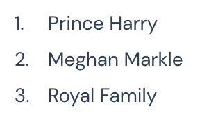 - ordered list β for items in a specific order.