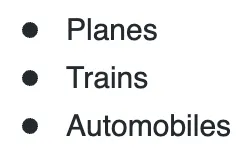 - unordered list β for items in no particular order.