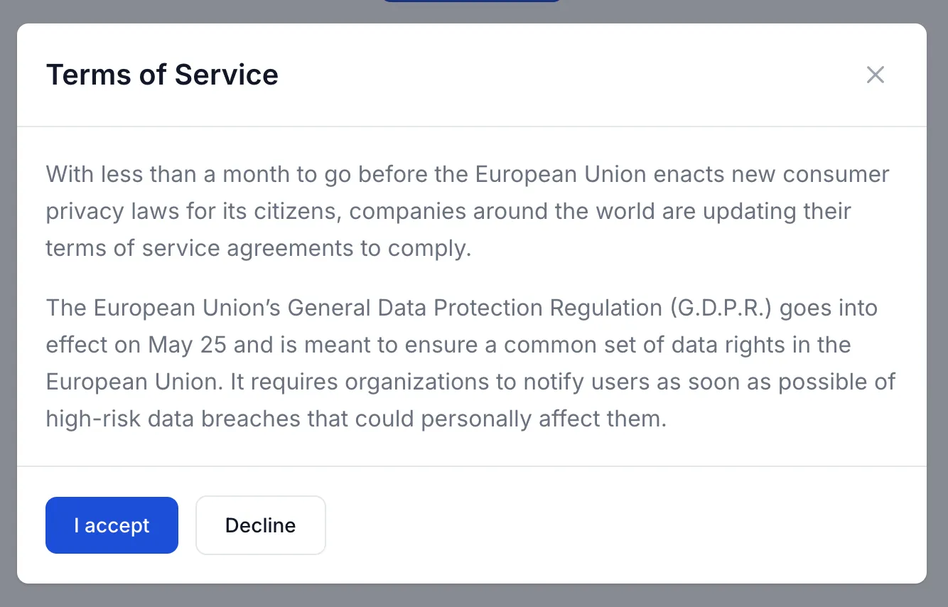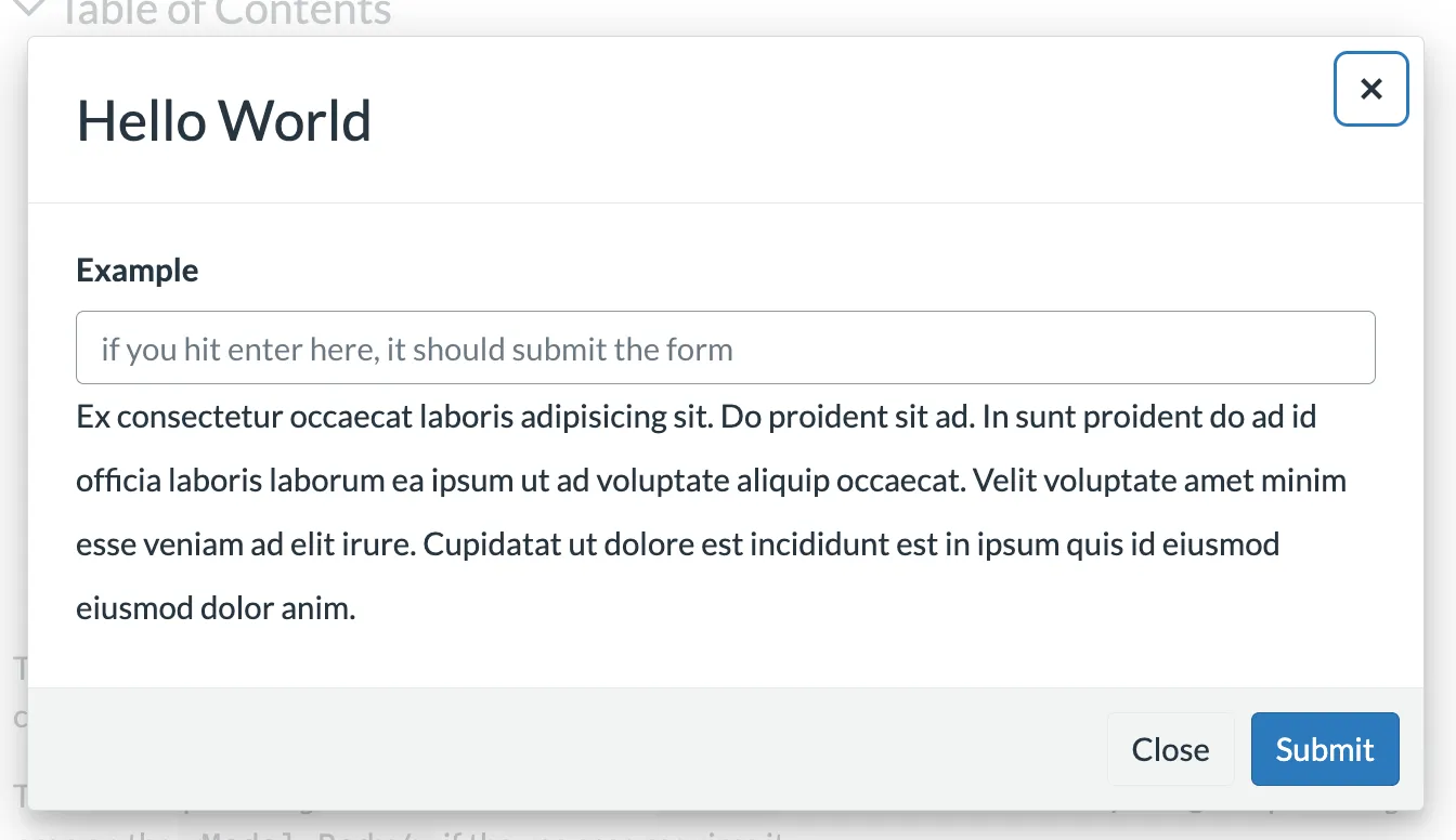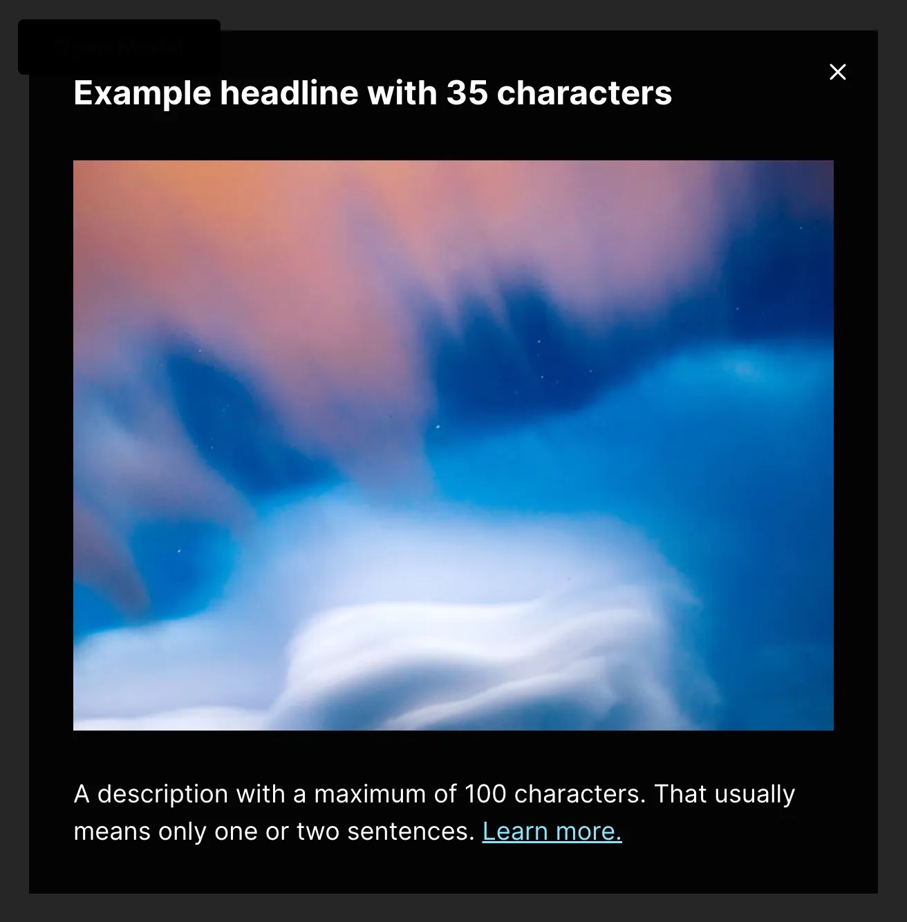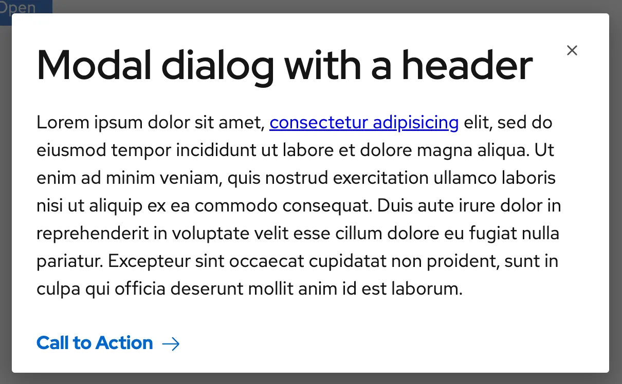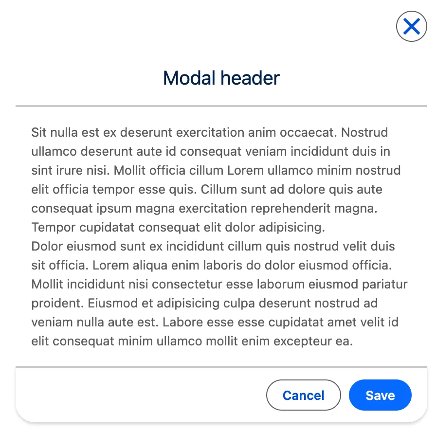 A modal is an interface element that appears over other content. It requires an interaction from the user before they can return to whatever is underneath.