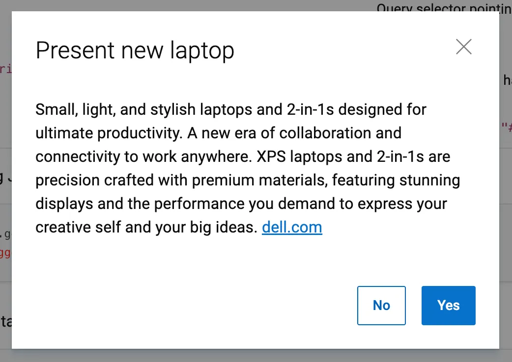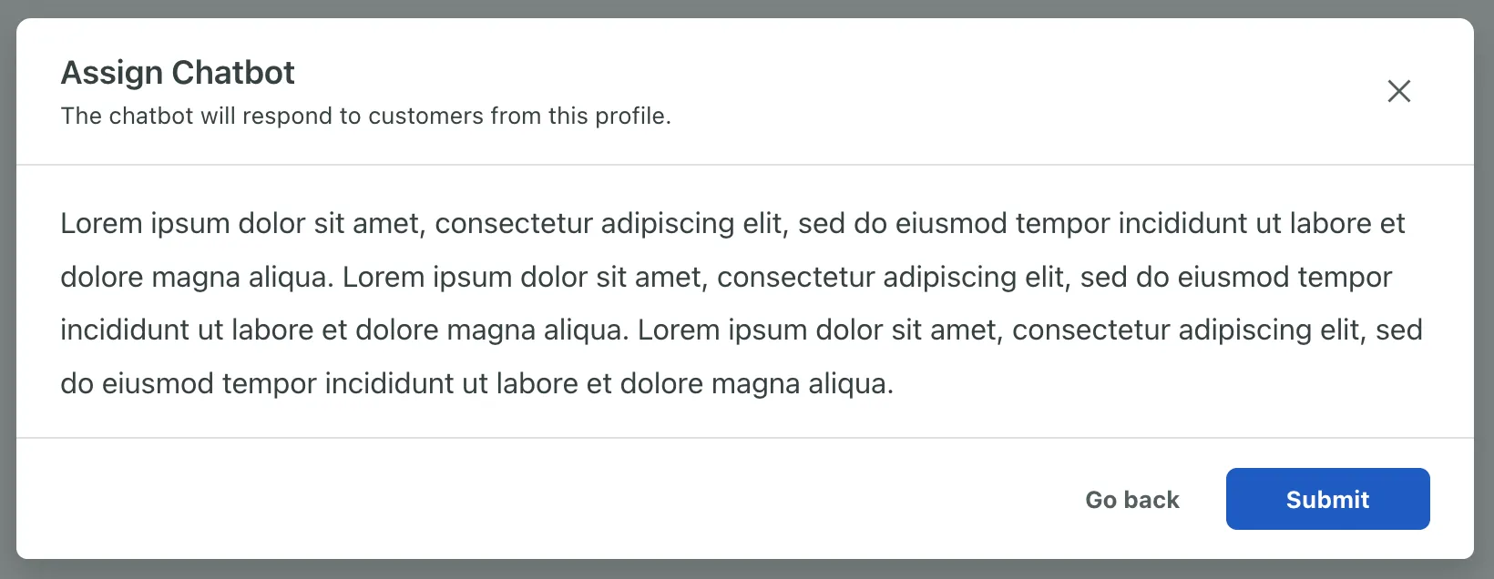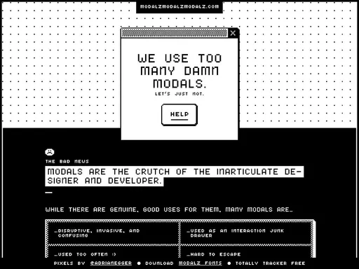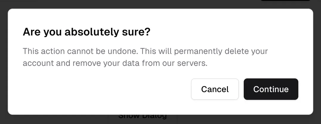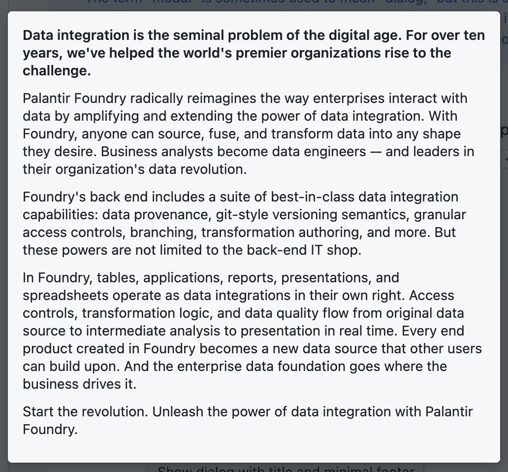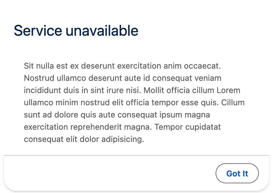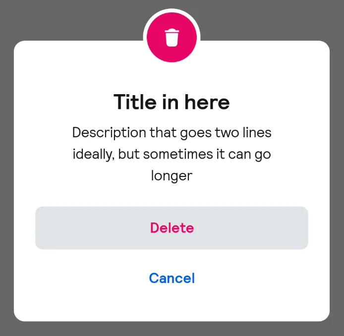 A modal is an interface element that appears over other content. It requires an interaction from the user before they can return to whatever is underneath.