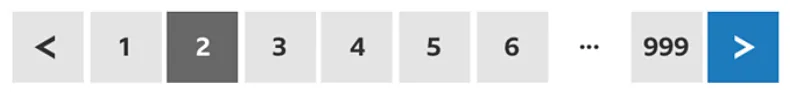 The most basic form of pagination controls are simple ‘next’ and ‘previous’ buttons. More complex solutions may include links to specific page numbers and/or the first and last pages.