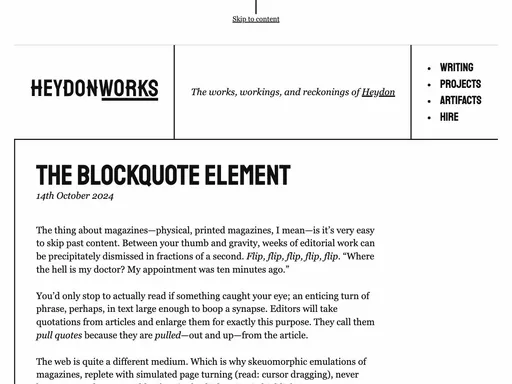 You can choose to override these (some CSS resets will do this automatically) but they are sensible defaults. If you want to enhance the appearance of your quotes, here are some of the typographical and layout techniques available: