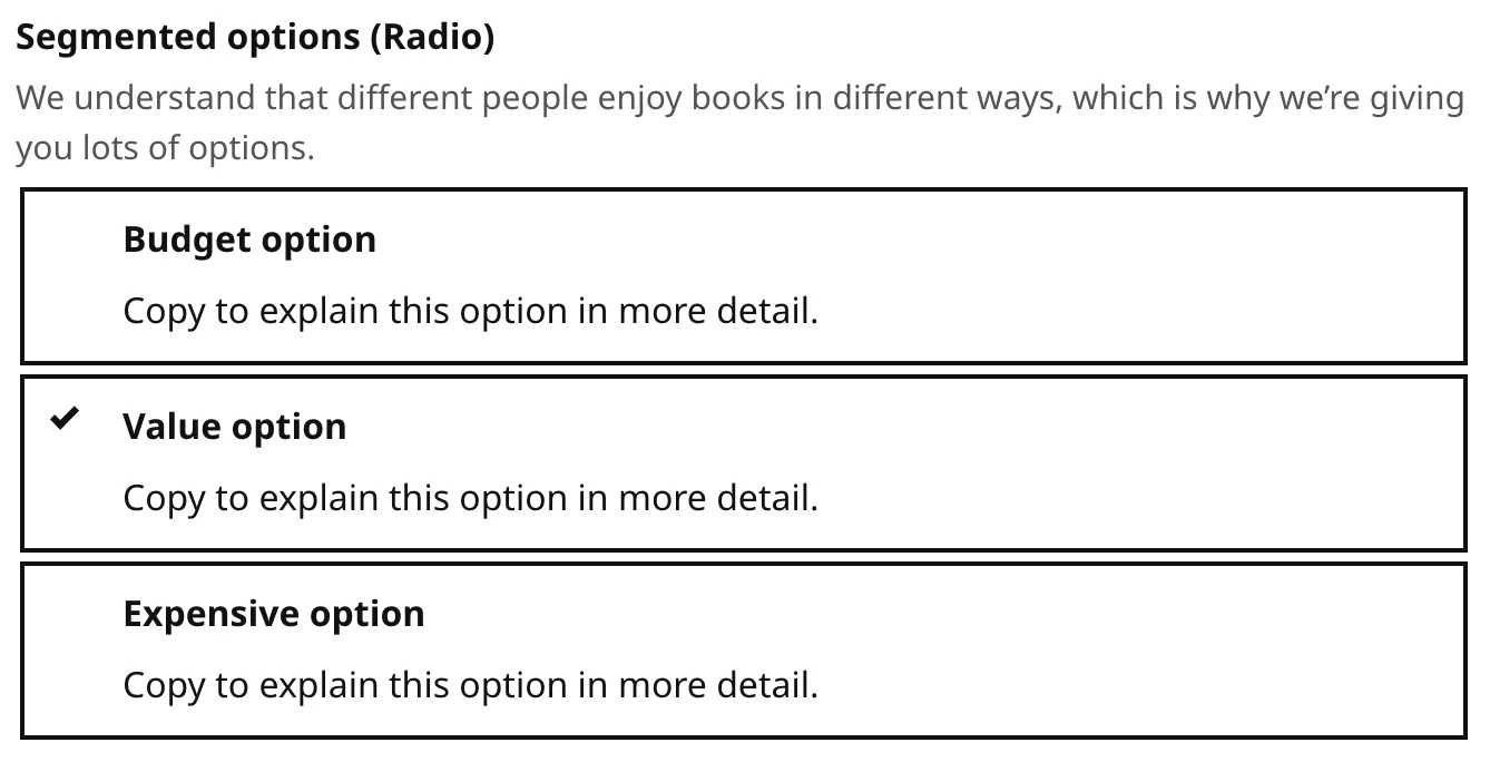 A hybrid somewhere between a button group, radio buttons, and tabs; segmented controls are used to switch between different options or views.