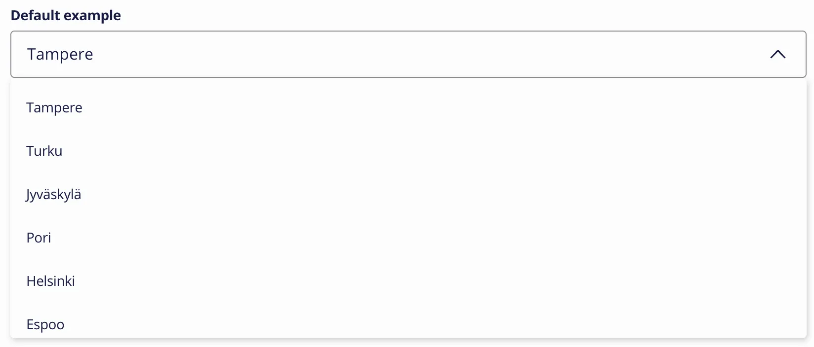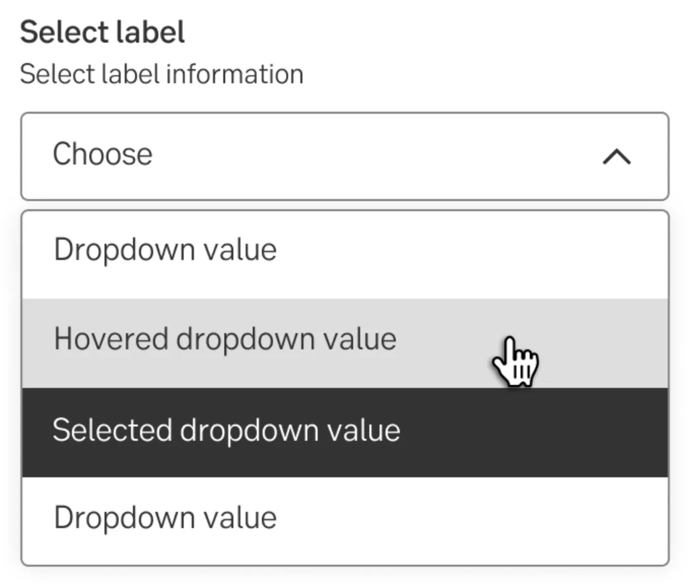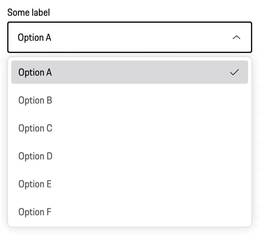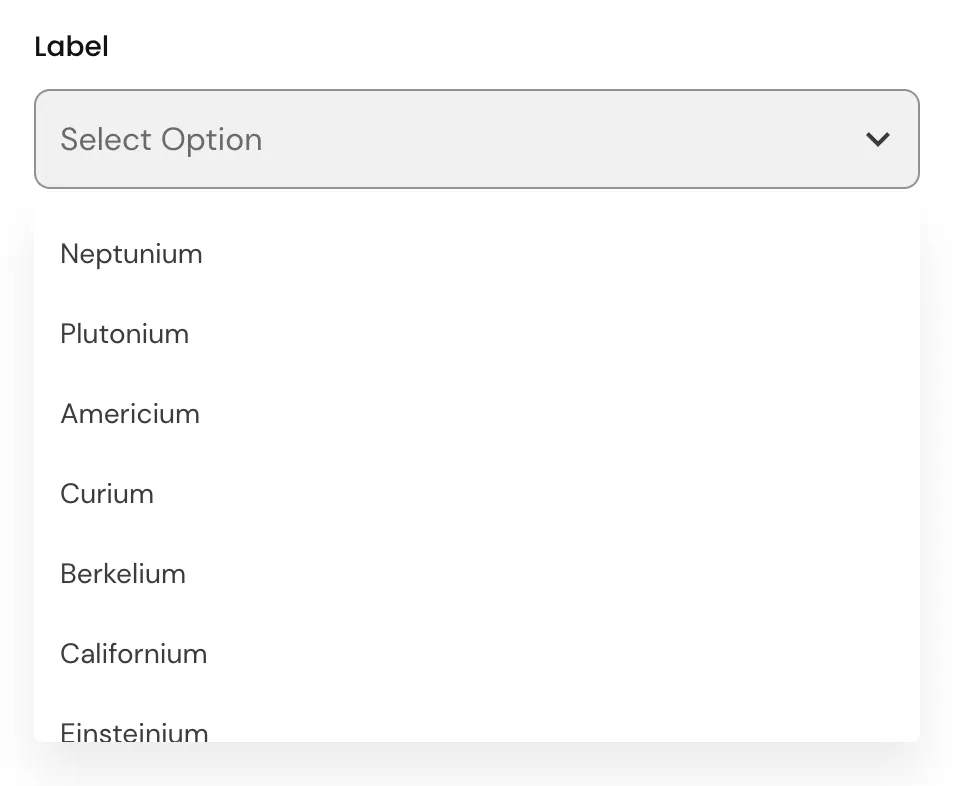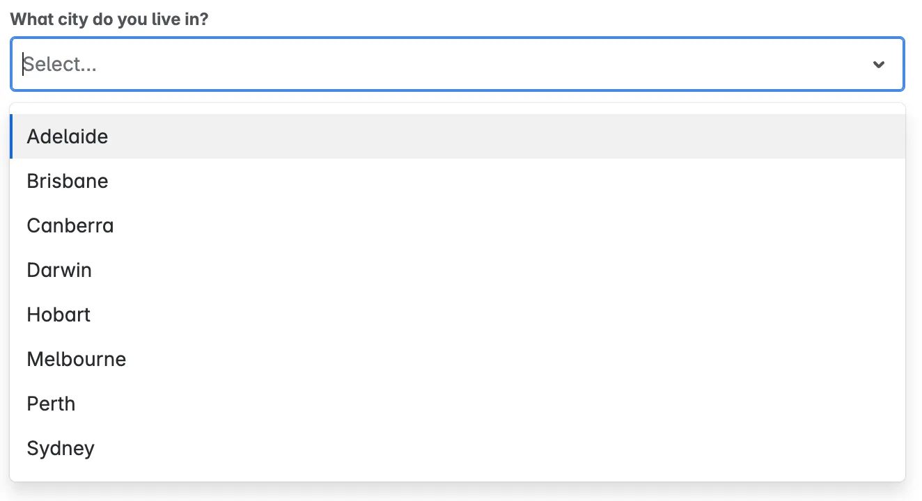 A form input used for selecting a value: when collapsed it shows the currently selected option and when expanded, it shows a scrollable list of predefined options for the user to choose from.