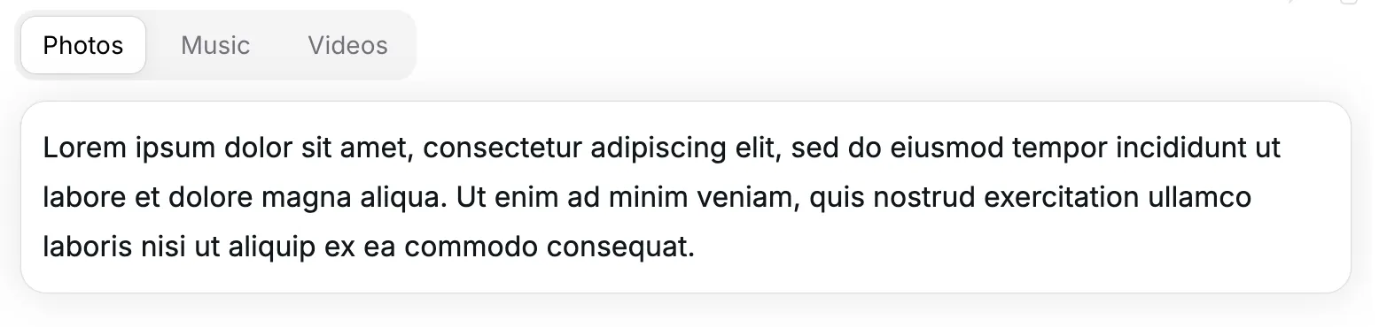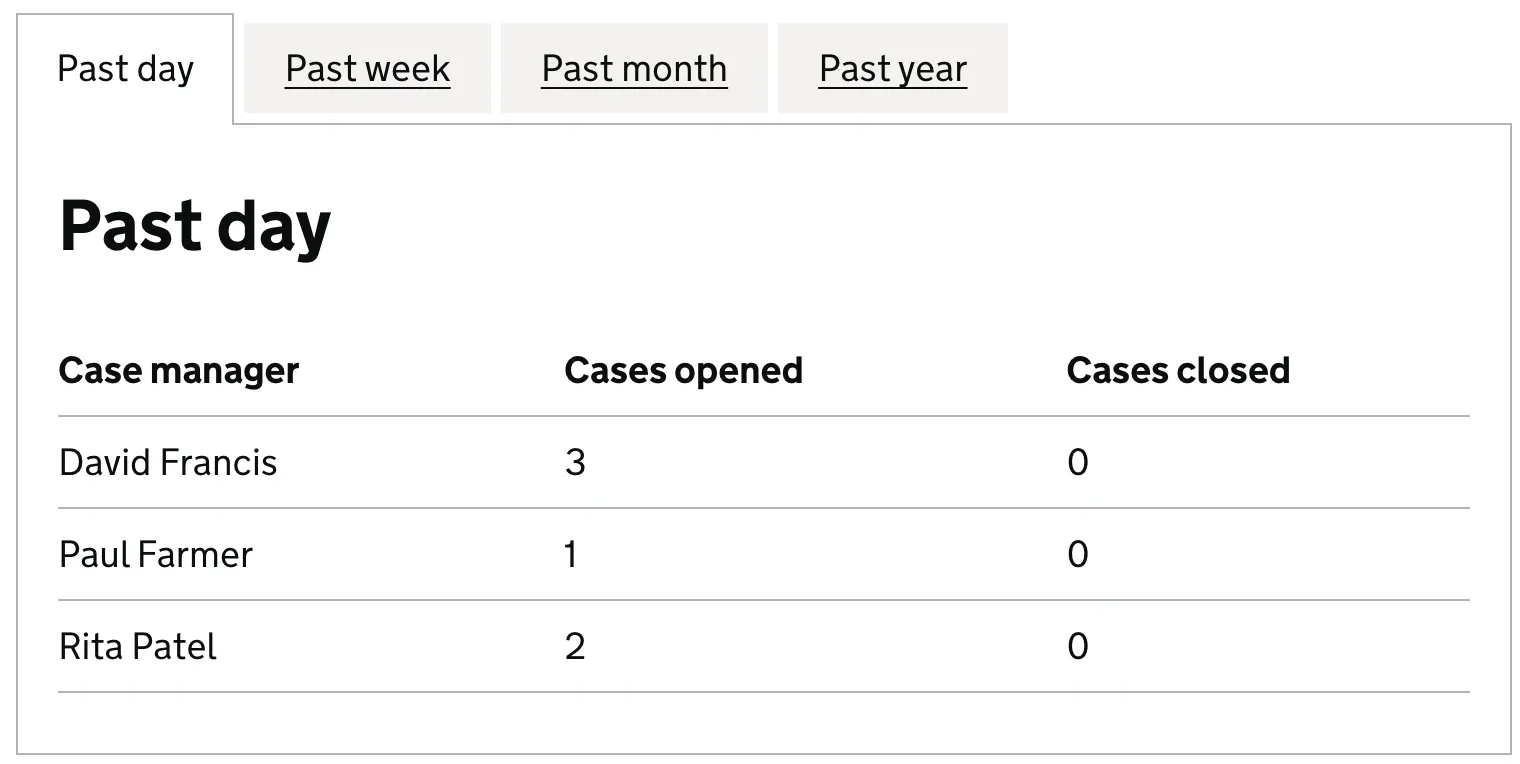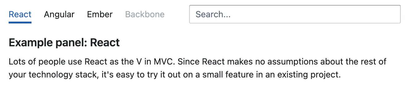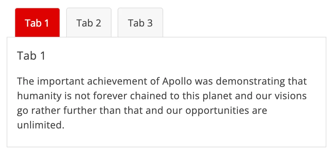 Each tab panel has an associated tab in the tab list, that when activated, displays the panel. Only one panel of content is shown at any one time.
