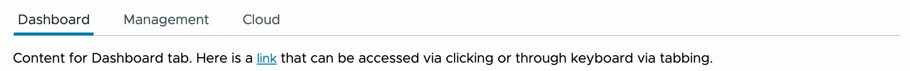 - Tab: When tabbing into the tab list, place focus on the active tab element. When focus is on a tab inside the tab list, pressing tab should move focus to the next focusable element in the page outside the tab list.