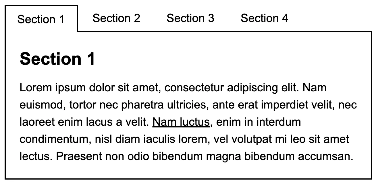 If you’re laying out your tabs horizontally, think about how they will appear at narrower screen widths — will they need to stack vertically or will you be better off swapping out the tabs for a different component (e.g. an accordion)?
