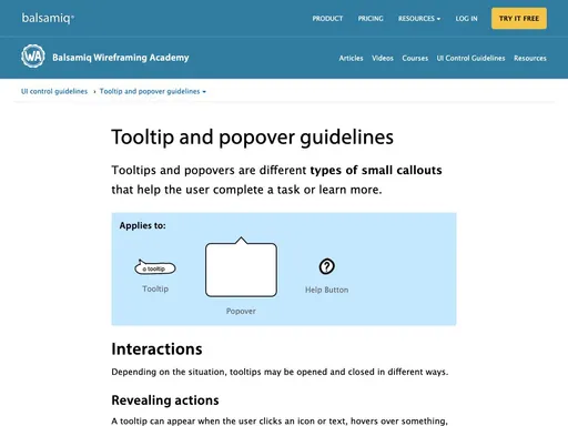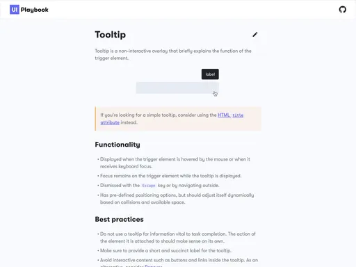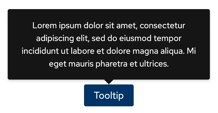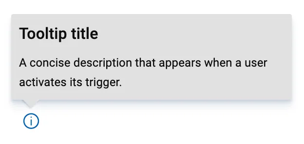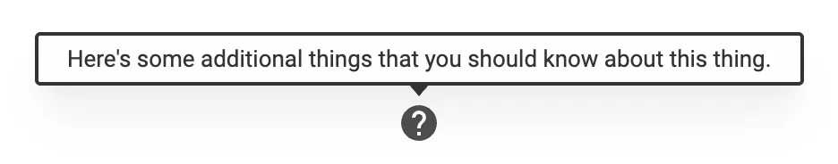 A means of displaying a description or extra information about an element, usually on hover, but can also be on click or tap.